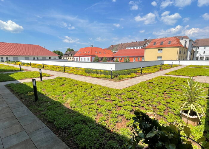 Für die städtebaulich anspruchsvolle Aufgabe wurde ein Bebauungsplan für die gesamte Grundstücksfläche entwickelt. Herzstück des Projekts bildet ein attraktiver Einzelhandelsstandort mit rund 5.100 m² Verkaufsfläche. Renommierte Filialisten sowie weitere mittelständische Einzelhändler konnten langfristig als Mieter gewonnen werden und sichern eine nachhaltige Nutzung sowie eine hohe Frequenz.