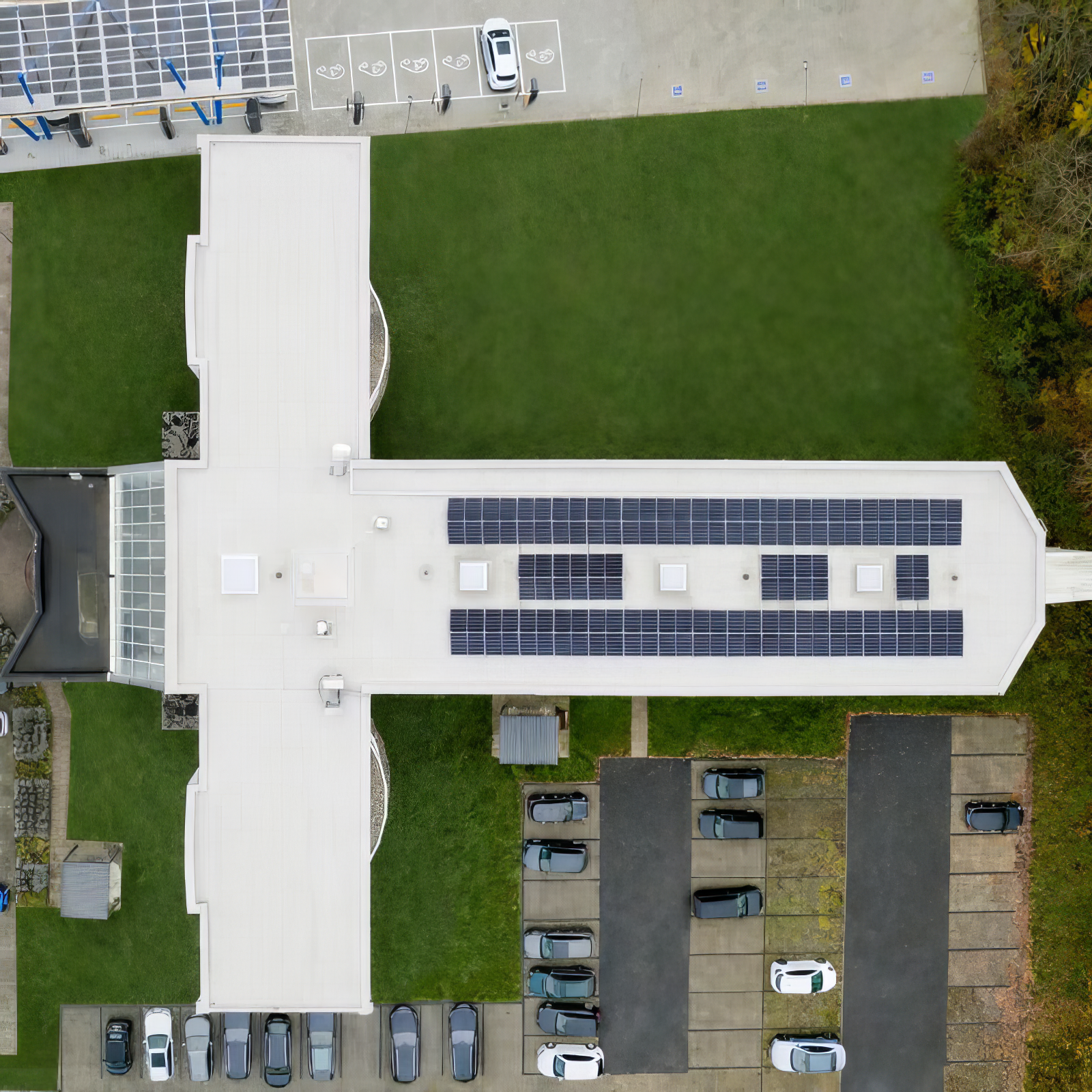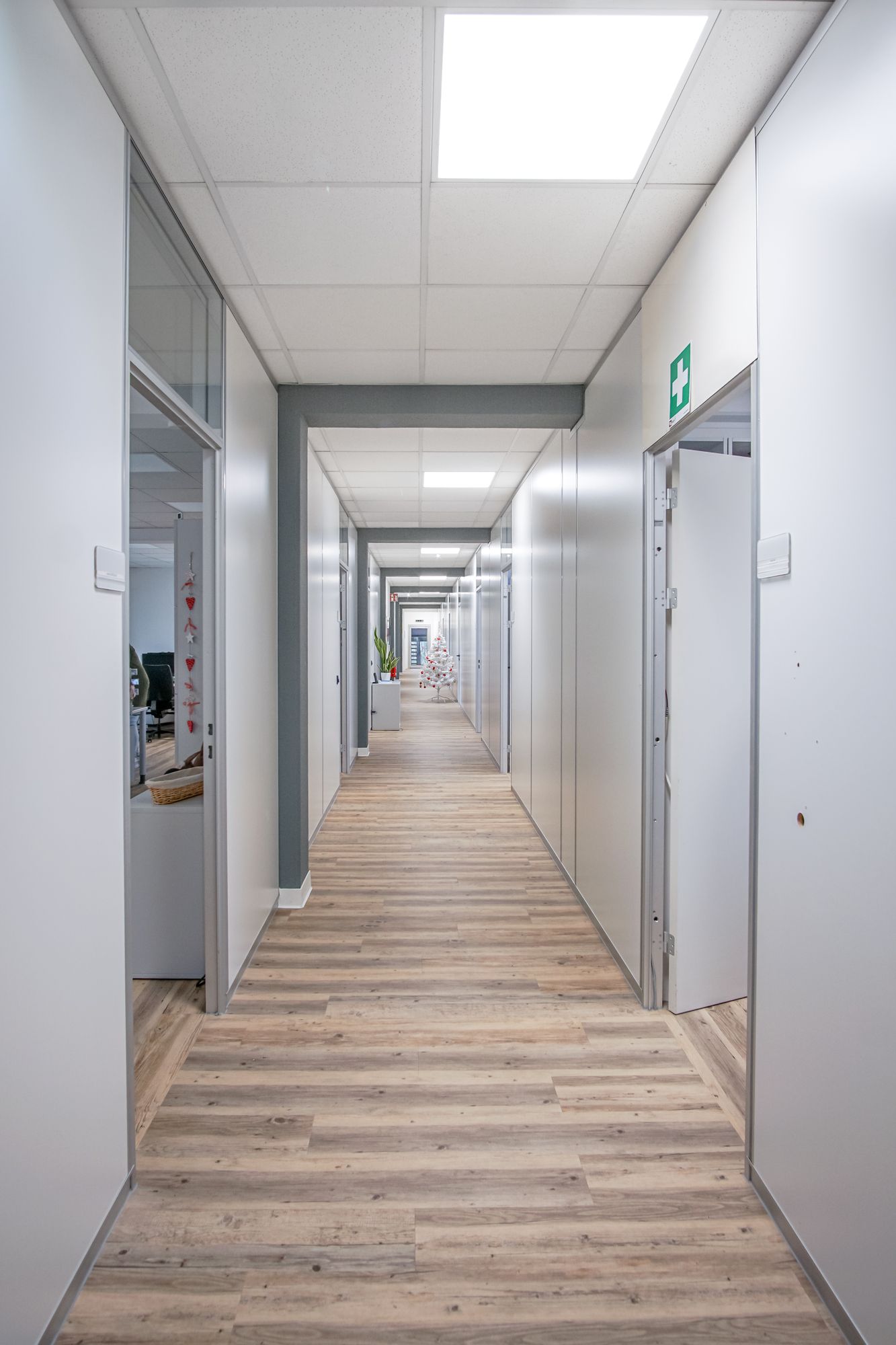 Darüber hinaus wurden ausgewählte Mietflächen im Erdgeschoss mit neuen Bodenbelägen in Holzoptik ausgestattet. Eine Dachsanierung mit Installation einer Photovoltaikanlage rundete das energetische Gesamtkonzept ab und stärkt die nachhaltige Ausrichtung des Standorts.